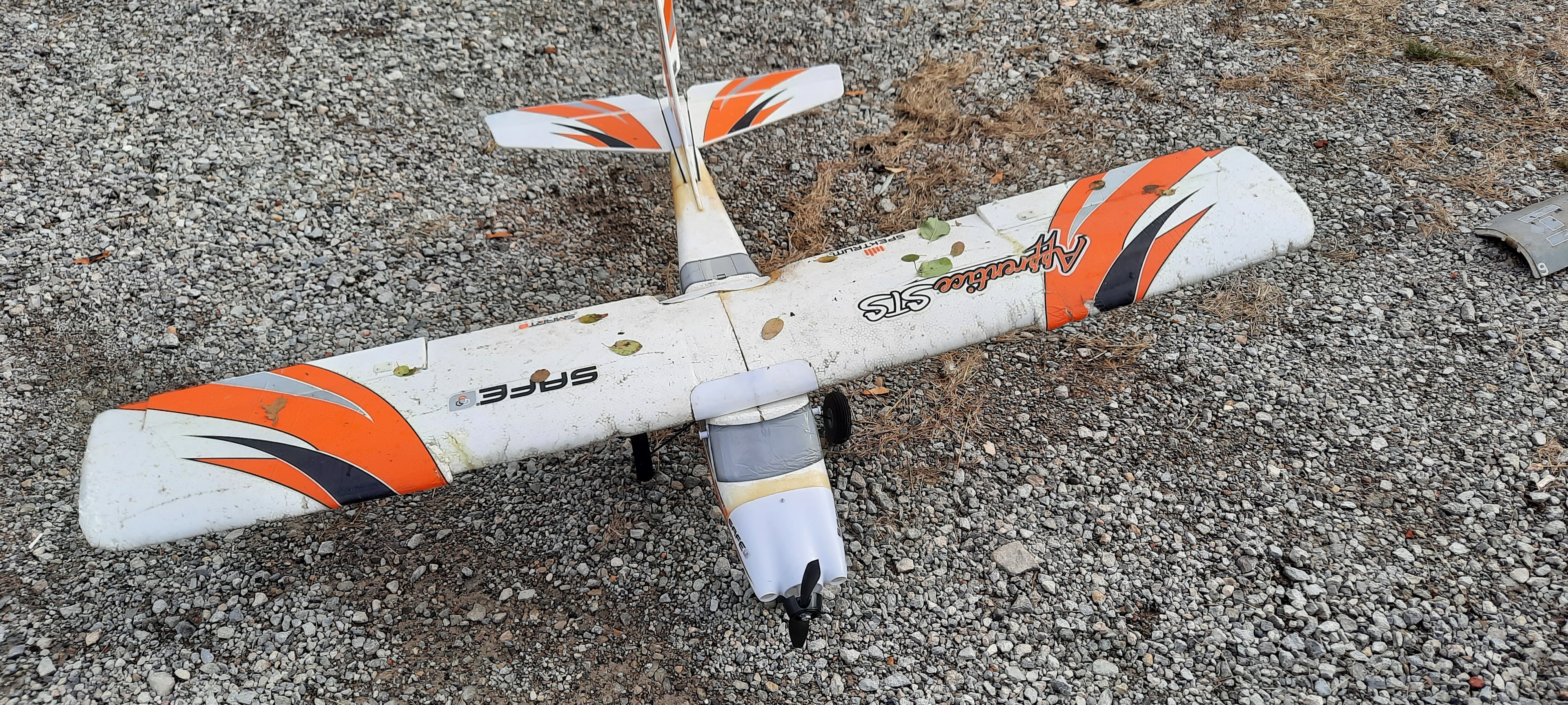 After (random foam bits, 2 rusted servos)Before (an E-Flite V900)